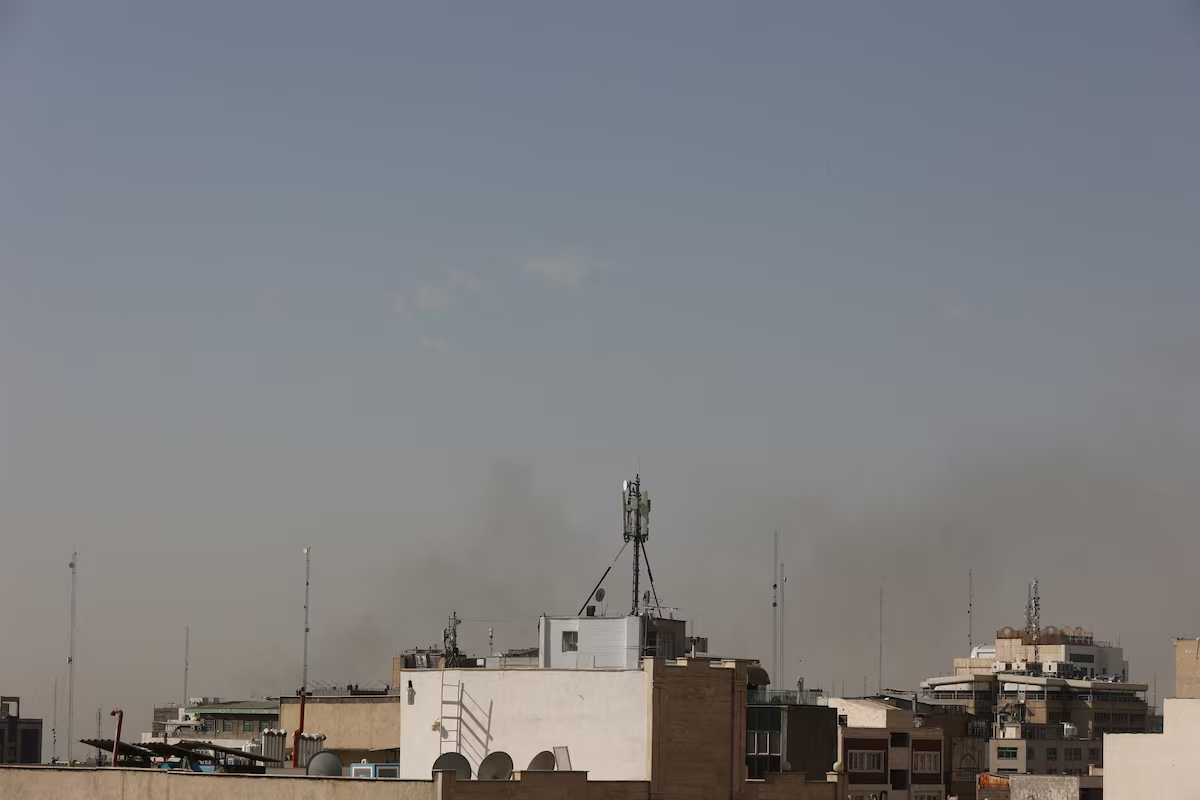 ▎以色列总理内塔尼亚胡。图源:华尔街日报2月28日,在伊朗德黑兰,以色列国防部长伊扎尔·卡茨宣布以色列已对伊朗发起先发制人攻击后,浓烟从爆炸现场升起。此画面为视频截屏。图源:路透社